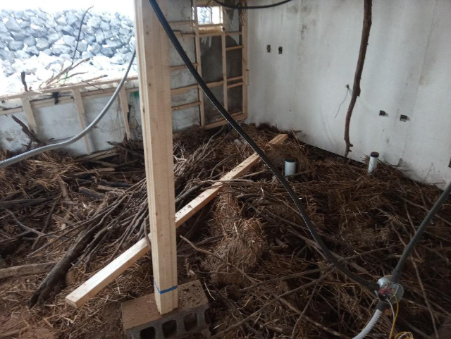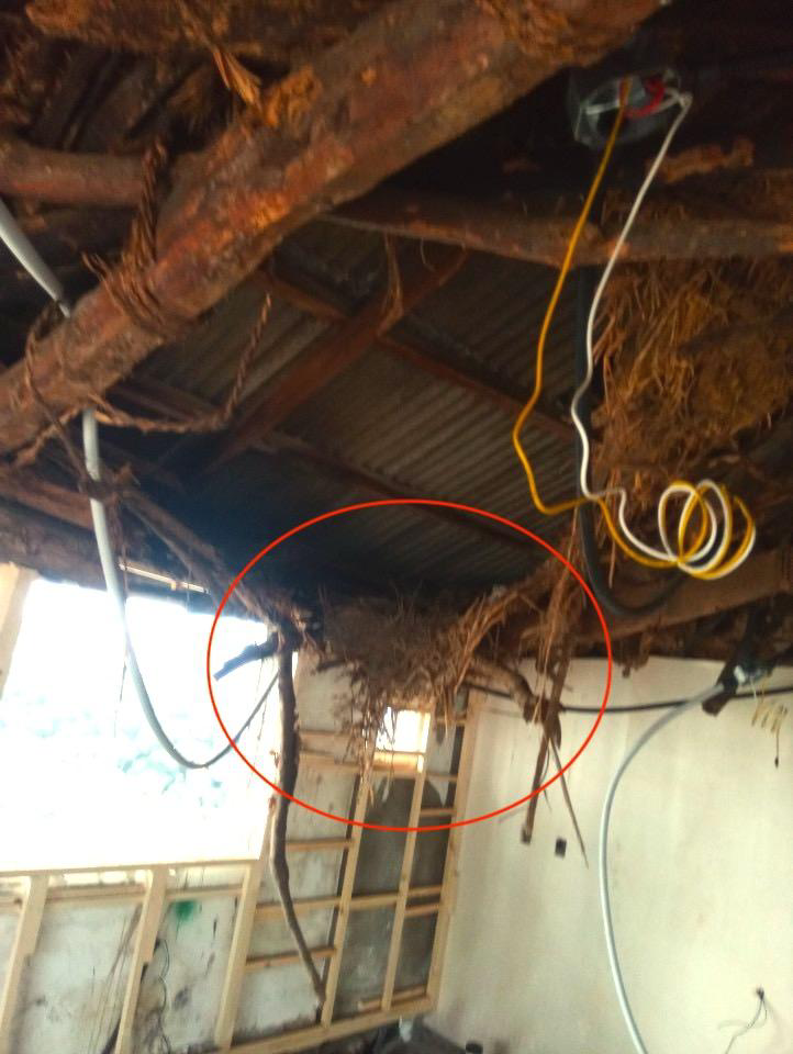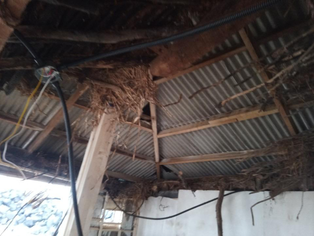 대들보를 추가로 덧대고 잔가지와 황토로 마감을 해놨다.