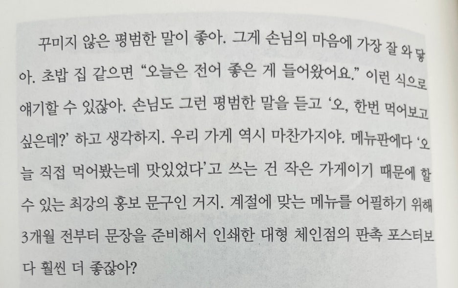 - 꾸미지 않은 평범한 말이 좋다 - '오늘 내가 이 메뉴를 직접 먹어봤는데 맛있었다 '