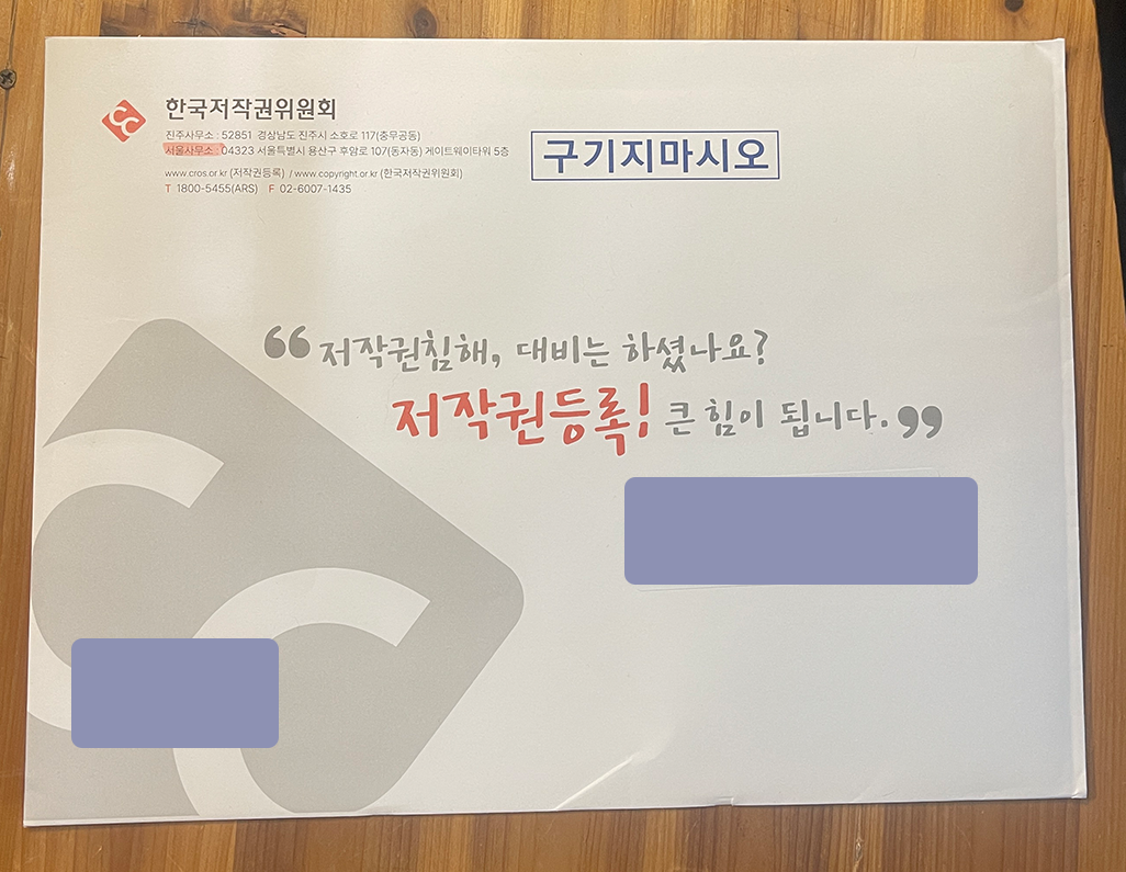 저는 결제를 진행하고 나서 다음날 저작권 위원회에서 문자가 왔습니다.