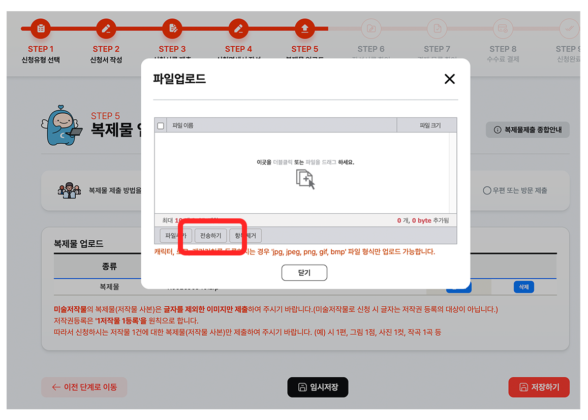 *전송하기 버튼을 누르셔야 파일이 올라갑니다!