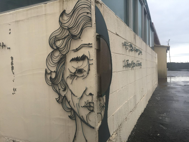 금속으로 벽화를 인상깊게 만들어 놨다.