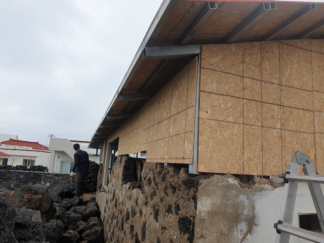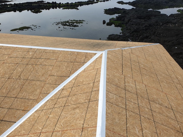 냉난방등을 고려해서 더 두꺼운 OSB 합판이 되었다.