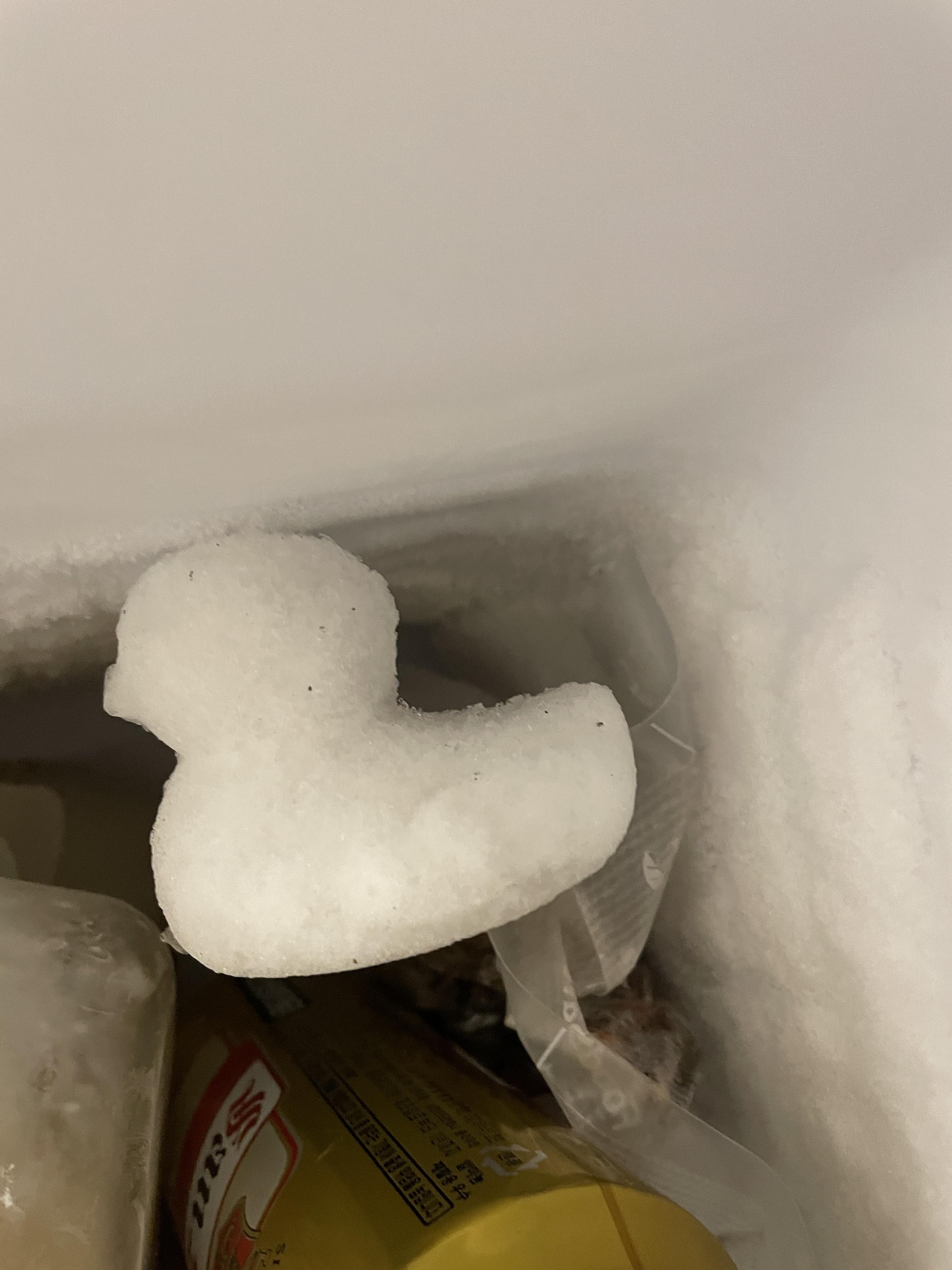 눈 오리를 만들어서 스프레이 분무기로 오리 전체에