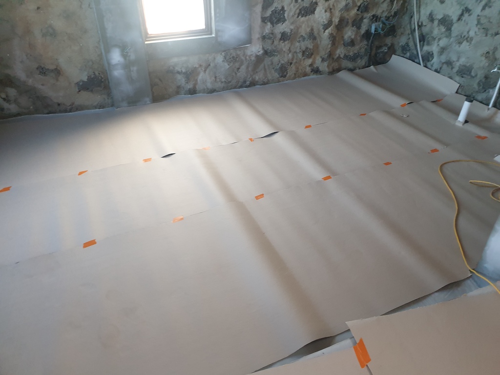 깔끔해진 바닥을 보호하기 위해 다시 종이를 깔았다.
